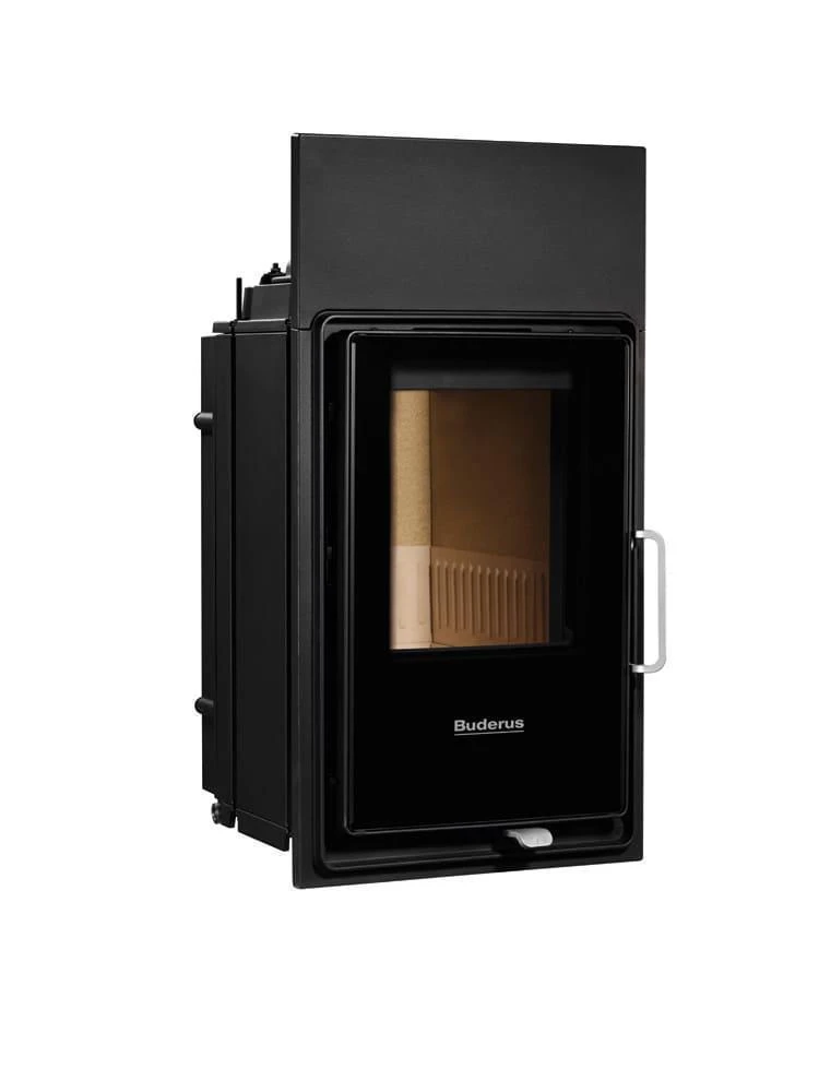 Die Serie Logaflame des traditionsreichen deutschen Unternehmens Buderus bietet ein enormes Spektrum an Kachelofeneinsätzen sowohl für den Ofenneubau als auch für den Austausch alter Geräte beinahe aller bekannten Kachelofeneinsatz-Fabrikate. Die Kachelofeneinsätze werden in Deutschland hergestellt, weisen die gewohnt langlebige Buderus-Qualität auf und befinden sich auf dem neuesten Standard hinsichtlich Brennverhalten und Energieeffizienz. Bei dem Kachelofeneinsatz HLG316 handelt sich um ein Produkt für den Betrieb in bestehenden sowie neu errichteten Warmluftkachelöfen mit Nachheizflächen oder Nachheizkästen, für Kachelöfen über 2 Geschosse und Hypokaustenanlagen. Die besonders großzügige Sichtscheibe in der stilvoll gestalteteten einteiligen Tür mit hochwertiger Doppelverglasung und Design-Türgriff gibt den Blick auf das faszininierende Flammenspiel im Inneren des Heizeinsatzes frei. Ausgerüstet mit einer Muldenfeuerung ist der Logaflame HLG316 für das Heizen mit Holzscheiten ausgestattet. Eine Entnahme der Asche ist nur alle 4-6 Wochen nötig.