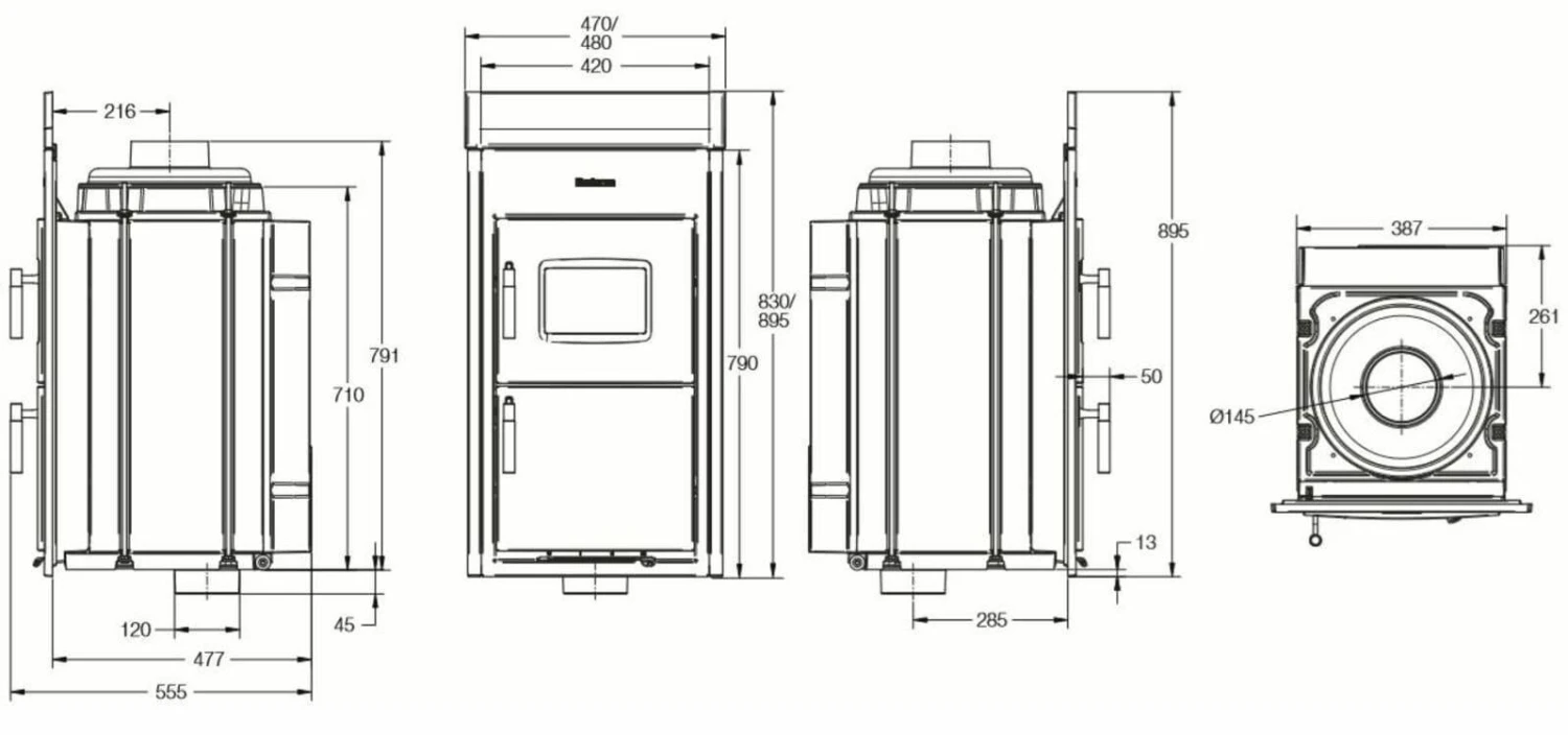 Der Kachelofeneinsatz Logaflame HLG317 ist für eine individuelle Anpassung an Ihre baulichen Gegebenheiten mit 2 verschiedenen Anbauleisten für die Frontplatte zur Auswahl bei Kaminprofi24 erhältlich. Ebenfalls wählbar sind 2 verschiedene Durchmesser des Rauchrohranschlusses sowie für die Ausführung mit 145 mm Rauchrohranschluss die Kuppel mit waagerechtem Rauchrohrabgang. Auf Anfrage ist der Kachelofeneinsatz auch mit exzentrischer Kuppel mit 145 mm Rauchrohranschluss erhältlich.