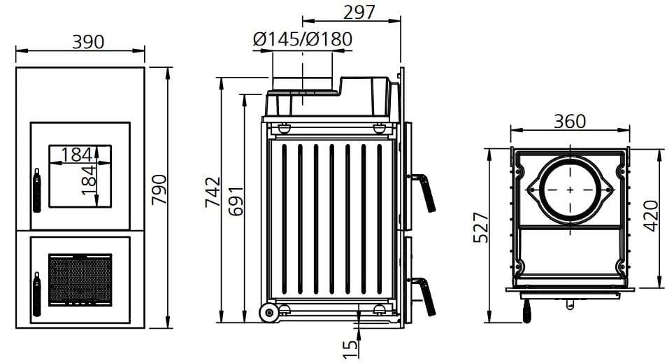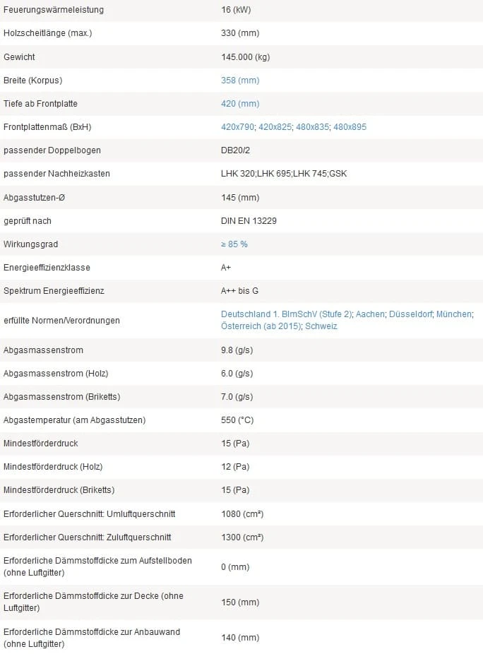 Der Kachelofeneinsatz Rubin K16 ist mit 2 verschiedenen Nennwärmeleistungsstufen und Rauchrohrstutzendurchmessern zur Auswahl bei Kaminprofi24 erhältlich.