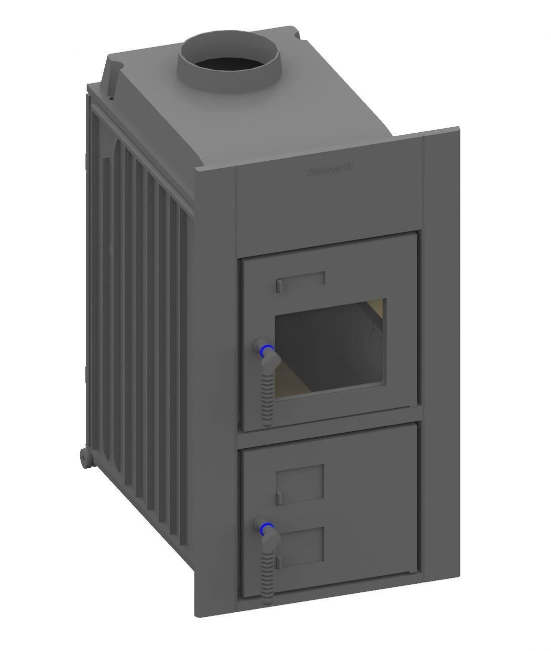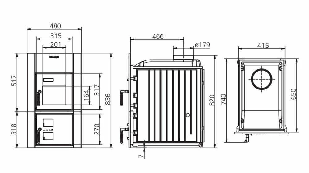 Direkter Anschluss an den Schornstein nicht zulässig. Anschluss nur in Verbindung mit Nachheizkasten oder Nachheizfläche möglich.