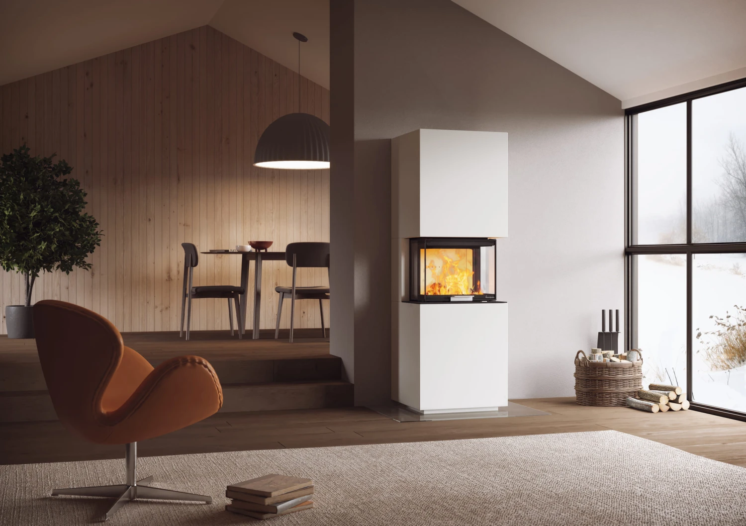 Die Kaminbausätze des norwegischen Herstellers Nordpeis überzeugen durch moderne Designs im angesagten Skandinavischen Stil, den Einsatz hochwertiger Materialien und große Produktvielfalt sowie mit kinderleichtem Aufbau. Der Korpus des Kaminbausatzes Capri wird gefertigt aus Spezialbeton, dem sogenannten Shape Stone Light, dessen hohe Haltbarkeit und Festigkeit durch eine, in den belasteten Bereichen sogar verstärkte, Faserarmierung erlangt wird. Das Material hat eine leichte Speicherwirkung und sorgt so auch nach dem Abbrand für eine angenehme Strahlungswärme, dank welcher ein nachhaltig wohlig-warmes Raumklima geschaffen wird. Bei dem Kaminbausatz Capri handelt es sich um einen Bausatz für einen Tunnelkamin mit 1,79 m Höhe und großzügiger 3-seitiger Verglasung, was ihn innerhalb des Interieurs zu einem aufsehenerregenden Blickfang der ganz besonderen Art macht. So wird ein besonderer Platz mit viel optischem Charme geschaffen, der auf wunderbare Weise gemütliche Wärme und Wohnlichkeit verströmt. Der Capri verfügt über ein zeitloses, reduziertes Design mit klaren Linien und großen Panoramascheiben, die aus gleich mehreren Blickwinkeln einen spektakulären Blick auf das herrlich prasselnde Kaminfeuer in seinem Inneren freigeben. Sein besonders exklusiver Look entsteht nicht zuletzt auch dank der hochschiebbaren Tür, dank derer das Nachlegen von Holzscheiten auf besonders bequeme Weise erfolgen kann. Der Spezialbeton kann darüber hinaus für eine individuelle Gestaltung mit einer Ofenfarbe in Ihrem Wunschfarbton angestrichen werden. Der Anschluss des in diesem 3-Seiten-Kamin verbauten Kamineinsatz Nordpeis Q-24UL kann ganz flexibel oben oder hinten vorgenommen werden.