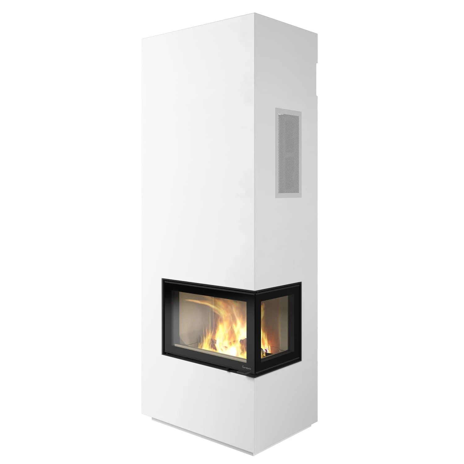 Die Kaminbausätze des norwegischen Herstellers Nordpeis überzeugen durch moderne Designs im angesagten Skandinavischen Stil, den Einsatz hochwertiger Materialien und große Produktvielfalt sowie mit kinderleichtem Aufbau. Der Korpus des Kaminbausatzes Davos A High wird gefertigt aus Spezialbeton, dem sogenannten Shape Stone Light, dessen hohe Haltbarkeit und Festigkeit durch eine, in den belasteten Bereichen sogar verstärkte, Faserarmierung erlangt wird. Das Material hat eine leichte Speicherwirkung und sorgt so auch nach dem Abbrand für eine angenehme Strahlungswärme, dank welcher ein nachhaltig wohlig-warmes Raumklima geschaffen wird. Bei dem Kaminbausatz Davos A High handelt es sich um einen Bausatz für einen Eckkamin mit einer stolzen Höhe von 2,38 m und einer großzügigen 2-seitigen Verglasung, welche den Blick des Betrachters gleich aus mehreren Perspektiven auf das herrlich prasselnde Kaminfeuer in seinem Inneren freigibt und den Kamin zu einem besonderen Blickfang Ihrer ganz persönlichen Raumgestaltung werden lässt. Er verfügt über ein hochmodernes, minimalistisches Design mit klaren Linien und kann gleichermaßen gut an eine gerade Wand oder in einer Ecke platziert werden. Der Spezialbeton kann darüber hinaus für eine individuelle Gestaltung mit einer Ofenfarbe in Ihrem Wunschfarbton angestrichen werden. Der Anschluss des in diesem Eckkamin verbauten Kamineinsatz Nordpeis N-29A kann ganz flexibel oben oder hinten vorgenommen werden. Der Kamin kann auf Wunsch raumluftunabhängig betrieben werden und verfügt über eine entsprechende DIBt-Zulassung.