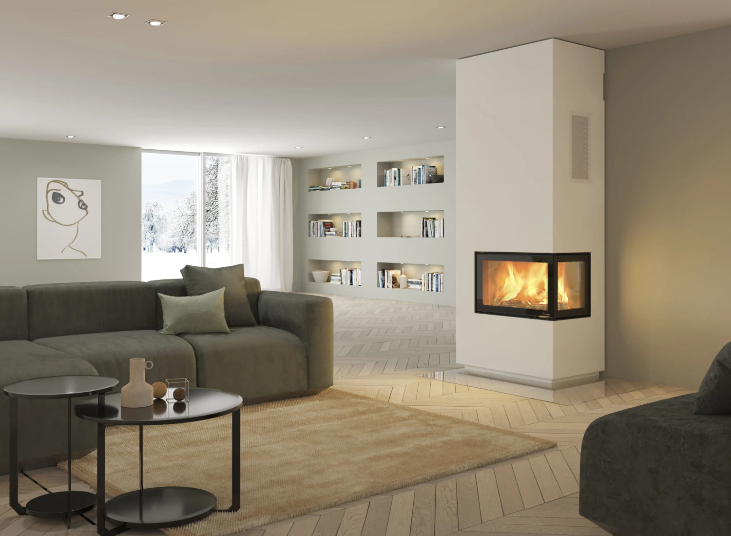 Kamineinsatz wahlweise auf der linken oder rechten Seite