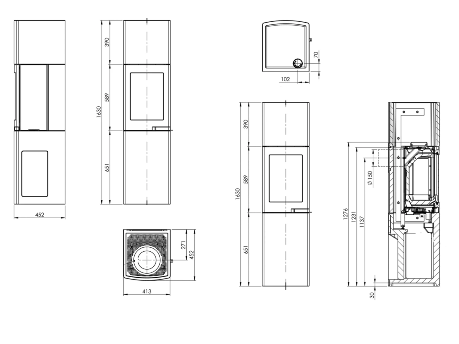 | Höhe Feuerraumtür | ca. 58,9 cm |