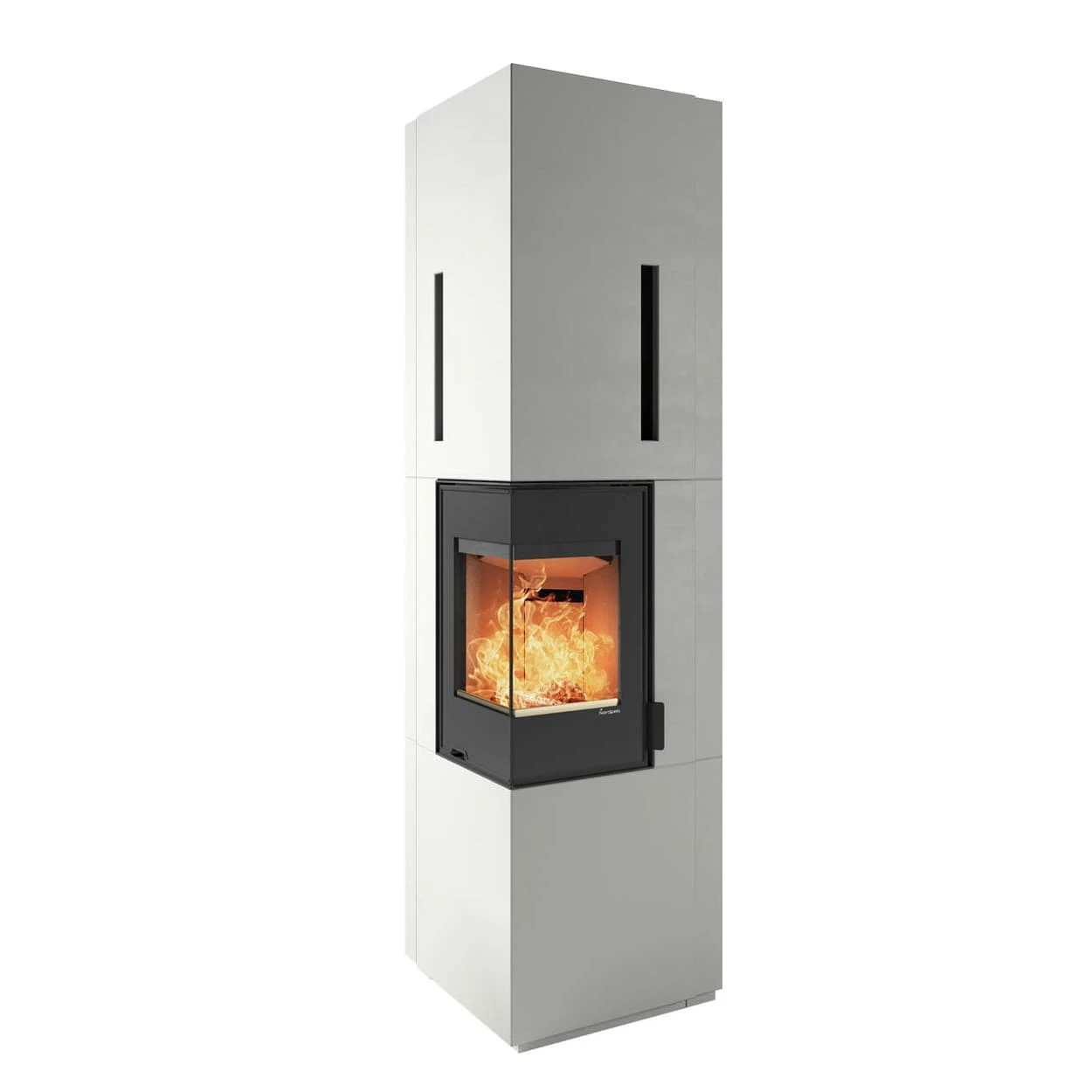 Die Kaminbausätze des norwegischen Herstellers Nordpeis überzeugen durch moderne Designs im angesagten Skandinavischen Stil, den Einsatz hochwertiger Materialien und große Produktvielfalt sowie mit kinderleichtem Aufbau. Der Korpus des Kaminbausatzes Odense Exclusive High wird gefertigt aus Spezialbeton, dem sogenannten Shape Stone, dessen hohe Haltbarkeit und Festigkeit durch eine, in den belasteten Bereichen sogar verstärkte, Faserarmierung erlangt wird. Das Material hat eine leichte Speicherwirkung und sorgt so auch nach dem Abbrand für eine angenehme Strahlungswärme, dank welcher ein nachhaltig wohlig-warmes Raumklima geschaffen wird. Bei dem Kaminbausatz Odense Exclusive High handelt es sich um einen Bausatz für einen raumhohen Eckkamin mit geringer Grundfläche, ausgezeichnet geeignet auch für Räume mit wenig Platzangebot, mit 2-seitiger, außenliegender Verglasung, die dem Ofen einen besonders noblen Charakter verleiht und ihn, in Kombination mit seiner beachtlichen Höhe von knapp 2,40 m, zum unbestrittenen optischen Ankerpunkt innerhalb Ihrer ganz persönlichen Raumgestaltung werden lässt. Bei der Gestaltung des Odense Exclusive High lag der Fokus auf einer klaren Linienführung sowie auf der spektakulären Sicht auf das herrlich prasselnde Kaminfeuer in seinem Inneren, erlangt durch die großzügige Eckscheibe. Der graue Spezialbeton kann darüber hinaus für eine individuelle Gestaltung mit einer Ofenfarbe in Ihrem Wunschfarbton angestrichen werden. Der Anschluss des in diesem Eckkamin verbauten Kamineinsatz Nordpeis S-31A kann ganz flexibel oben oder hinten vorgenommen werden.