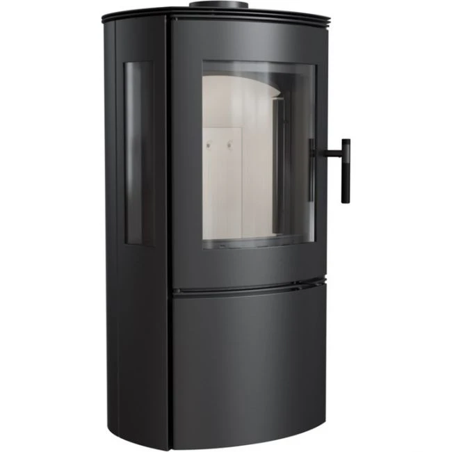 Der Kaminofen FALCON VIEW des renommierten Kaminherstellers kratki überzeugt mit aktuellster Feuerungstechnik, einem zurückhaltenden, modernen Design und starken 10 kW Heizleistung. Mit seiner dezenten Linienführung mit der eckigen, vorn abgerundeten Grundform, lässt sich der FALCON VIEW mühelos in Ihre individuelle Raumgestaltung integrieren. Besonderes Highlight ist die 3-seitige Verglasung mit großzügig geschnittenen Sichtscheiben aus hochwertiger, hitzebeständiger Glaskeramik. Dies gestattet dem Betrachter aus jeder Perspektive einen spektakulären Blick auf das faszinierende Flammenspiel im Inneren des Ofens. Das Fach unter dem Feuerraum, in welchem sich auch die Vorrichtung für den externen Frischluftanschluss diskret verbirgt, kann auch für die Aufbewahrung eines kleinen Holzvorrates zum Einsatz kommen. Für einen leichten Zugang ist es mit einem modernen Push-to-open-Mechanismus versehen.