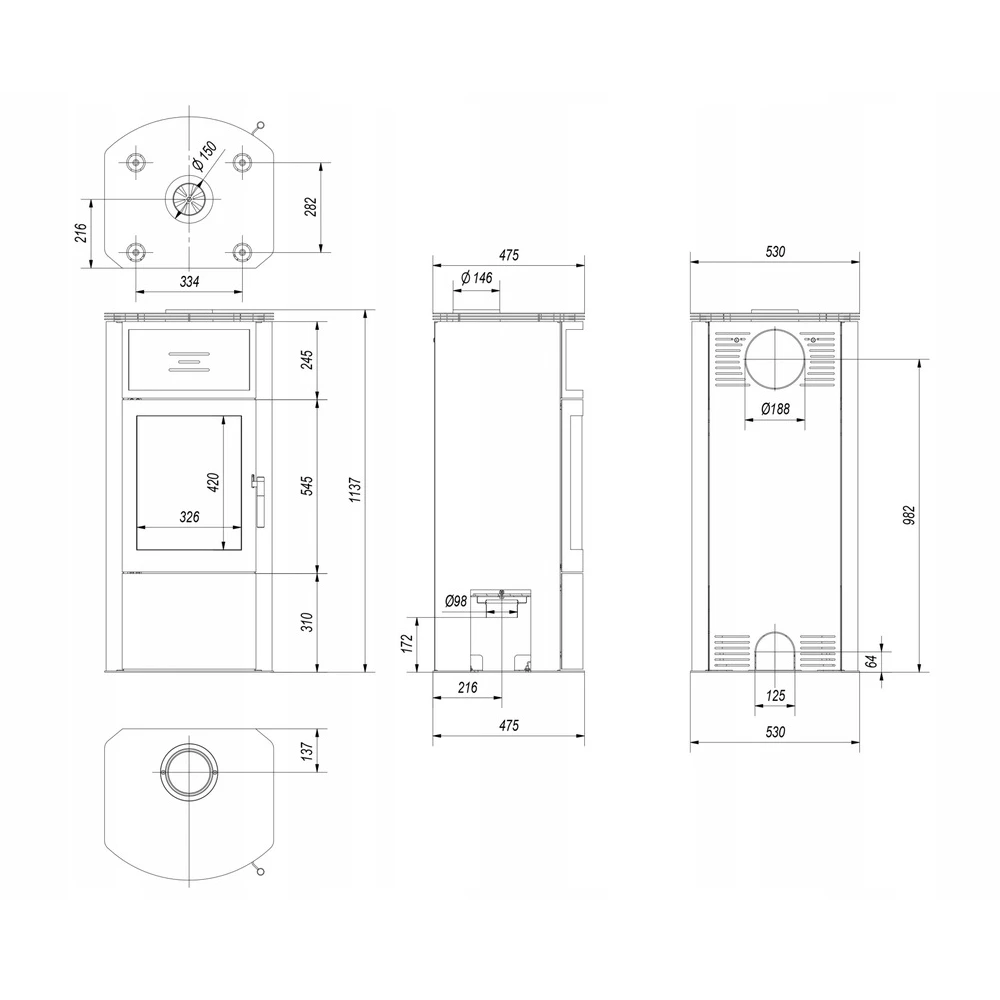 Der KOZA TITAN ist mit selbstschließender Tür ausgestattet. Auf Wunsch kann der Ofen mit Hilfe der auf Anfrage erhältlichen Top-Plattenabdeckung auch für den hinteren Rauchrohrabgang nachgerüstet werden.