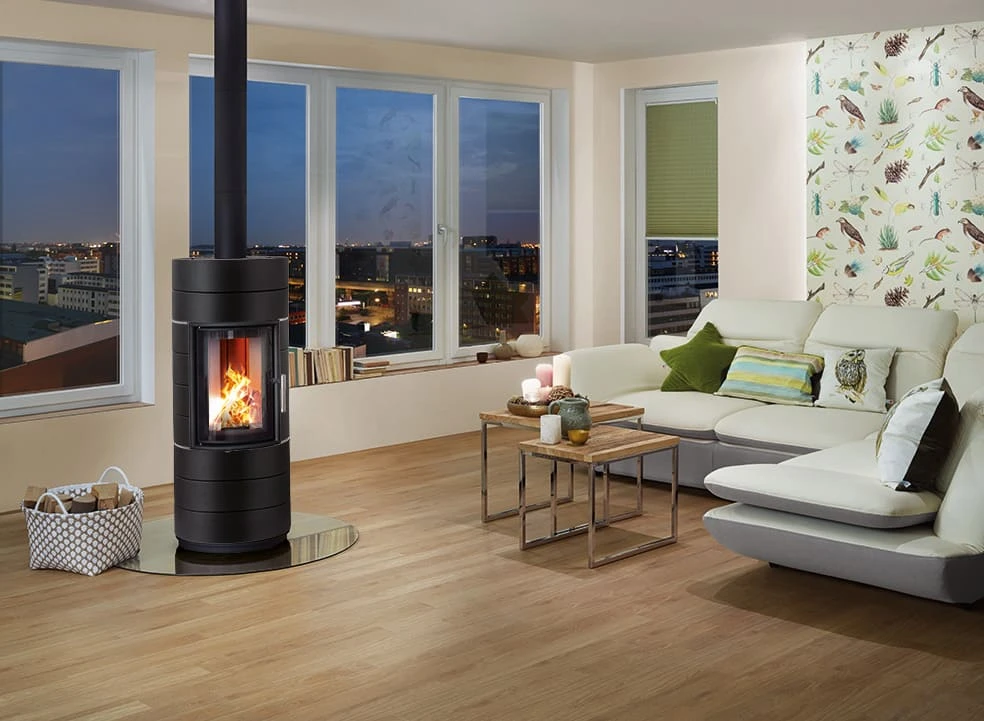 Die Oberfläche des Kaminofens steht wahlweise mit einer eleganten matt-schwarzen Lackierung oder, für eine besonders exklusive Anmutung, hochwertig emailliert in weiß oder dunkelgrün zur Verfügung. Darüber hinaus ist der Kaminofen COLONA lite in 3 verschiedenen Höhen, nämlich wahlweise mit 2, 3 oder 6 Aufsatzringen bei Kaminprofi24 erhältlich.