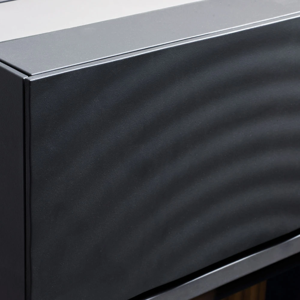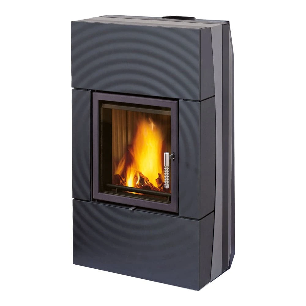 Bei dem wasserführenden Gussofen FONDIA des deutschen Traditionsunternehmens LEDA handelt es sich um einen in jeder Hinsicht aus der Masse herausstechenden Kaminofen. Seine fließenden Konturen und das unverwechselbare, wellenförmige Oberflächendesign, welches den Wellen nachempfunden ist, die Tropfen auslösen, die auf die Wasseroberfläche fallen, gepaart mit modernster Feuerungstechnik machen ihn zu einer vortrefflichen Wahl, um Ihrem Interieur eine besondere, individuelle Note zu verleihen. Grundsätzlich ist der FONDIA mit einer integrierten Wassertasche ausgestattet. Durch den Anschluss dieser an das zentrale Heizsystem lassen sich so selbst weit entfernte Räume mit Ihrem Kaminofen beheizen. Das Wärmeabgabeverhältnis des Kaminofens beträgt 55 / 45, d.h. dass rund 60 % der durch den FONDIA produzierten Wärme dem Wasserkreislauf und damit dem gesamten zu Objekt (Haus) zur Verfügung stehen. Der Rest wird als Strahlungswärme in den Aufstellraum abgegeben und erzeugt dort die typische wohlige Wärme, die nur ein Kaminofen erzeugen kann. Durch dieses Verhältnis wird das Risiko des Überheizens des Aufstellraumes deutlich reduziert und gleichzeitig die Energie optimal genutzt. Die Technik ist hervorragend für Gebäude mit Niedrigenergie-Standard geeignet und kann eine Solaranlage in der kalten Jahreszeit optimal ergänzen. Der Rauchrohranschluss des Schwedenofens befindet sich an der Rückseite.
