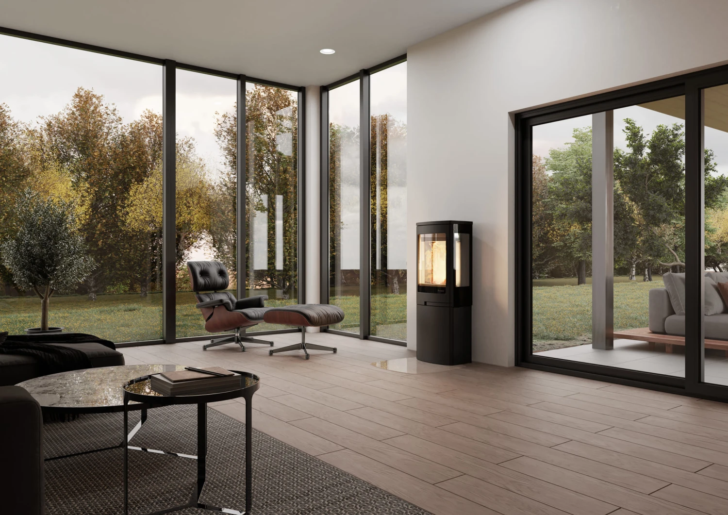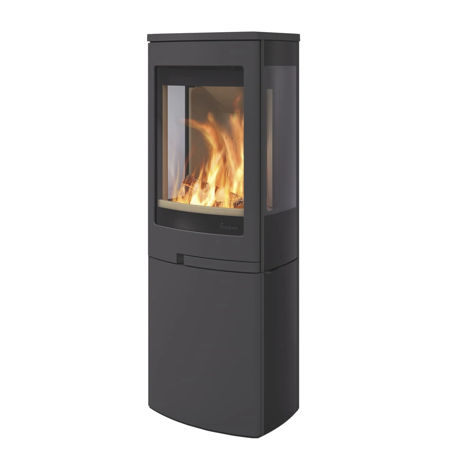 Die Kaminöfen des norwegischen Herstellers Nordpeis überzeugen durch moderne Designs im angesagten Skandinavischen Stil und den Einsatz hochwertiger Materialien. Der Kaminofen Duo 4 lässt sich dank seiner kompakten Abmaße besonders gut in kleine bis mittelgroße Räume integrieren. Dank der gekonnt subtilen und doch einprägsamen Linienführung integriert sich dieser Kamin spielend in jede Art von Interieur. Der Korpus des Kamines wird gefertigt aus hochwertigem, in elegantem Schwarz lackiertem Stahl. Extravagantes Highlight des Duo 4 sind die seitlichen Sichtscheiben, die den Blick des Betrachters in den Feuerraum auch aus ungewohnten Blickwinkeln freigeben. So wird auf besonders raffinierte Weise eine wunderbar wohnliche Atmosphäre geschaffen. Ausgesprochen praktisch ist das in den Sockel integrierte und dezent hinter einer Tür verborgene Holzfach. So kann Ihr Brennholzvorrat stets griffbereit und gleichzeitig stilsicher aufbewahrt werden.