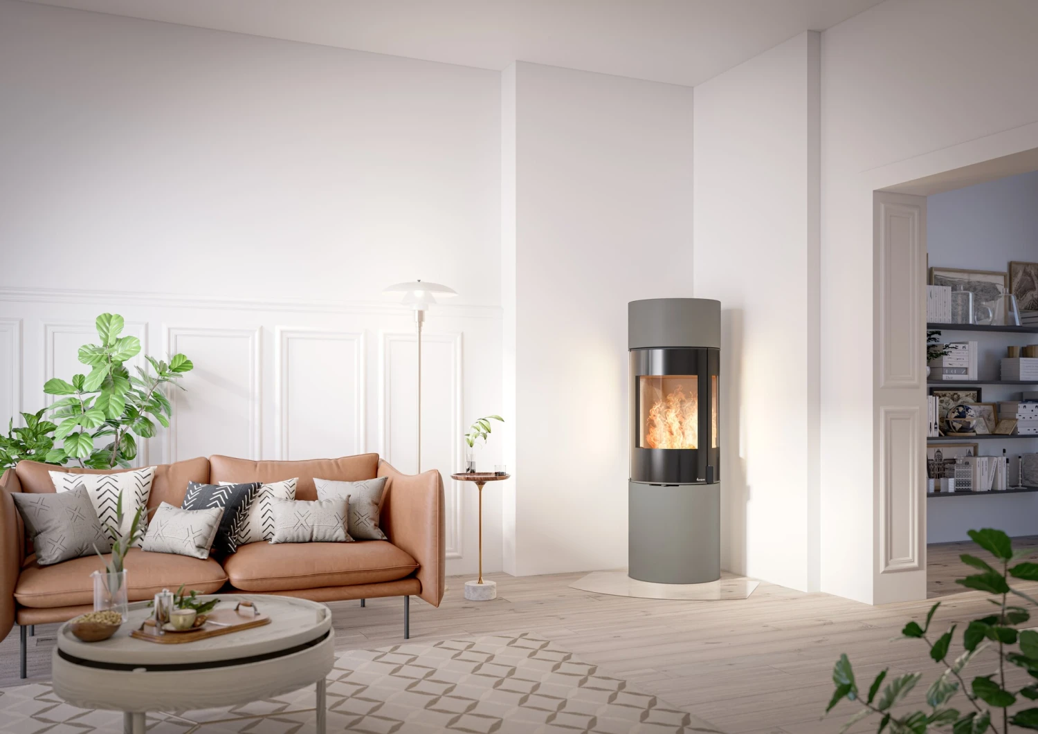 Die Kaminöfen des norwegischen Herstellers Nordpeis überzeugen durch moderne Designs im angesagten Skandinavischen Stil und den Einsatz hochwertiger Materialien. Die schlichte, schlanke Zylinderform verleiht dem Origo Colorado Exclusive den typischen Ausdruck des nordischen Minimalismus mit seiner reduzierten Formensprache bei gleichzeitig charakteristischer und höchst ästhetischer Anmutung. Dank der großzügigen, 3-seitigen, gebogenen Panoramaverglasung aus hochwertiger, hitzebeständiger Glaskeramik erhält der Betrachter aus jeder Perspektive einen unverstellten Einblick in den Feuerraum und damit auf das lebendige Flammenspiel im Inneren des Schwedenofens. Der Korpus des Origo Colorado Exclusive ist mit Colorado, einem hochwertigen, durchgefärbten, gewachsten und polierten Spezialbeton in der Farbe Natur, verkleidet. Das Material hat eine leichte Speicherwirkung und sorgt so auch nach dem Abbrand für eine angenehme Strahlungswärme, dank welcher ein nachhaltig wohlig-warmes Raumklima geschaffen wird. Die verglaste Front sorgt des Weiteren für ein besonders edles und einprägsames Erscheinungsbild und macht den den Ofen zum eindrucksvollen Blickfang innerhalb Ihrer individuellen Wohnraumgestaltung.