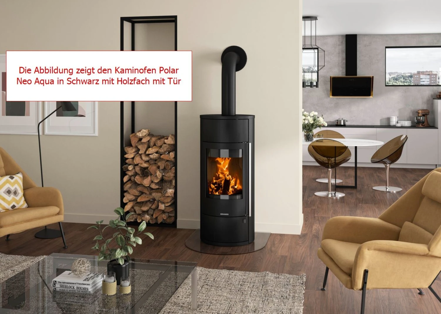 Die Kaminöfen der Serie Polar des traditionsreichen deutschen Familienunternehmens ORANIER sind mit ihrem harmonischen Design und der eleganten ovalen Grundform besonders vielseitig einsetzbar, da sie sich durch die schlichte, schnörkellöse Form des schwarz lackierten Korpus und die unterschiedlichen zur Verfügung stehenden Konfigurationsmöglichkeiten der Seitenverkleidung und der Top-Platte besonders gut an den Charakter und das Interieur eines jeden Raumes anpassen lassen. Bei der Auswahl der Verkleidung in den Varianten Stein oder Keramik punktet der Polar Neo Aqua außerdem mit einer dezenten Speicherleistung, denn diese Materialien speichern die Wärme des Feuers und geben sie langsam und gleichmäßig wieder an die Umgebung ab. So wird auch über einen längeren Zeitraum ein angenehm-wohliges Raumklima geschaffen. Der Polar Neo Aqua ist mit einer integrierten Wassertasche ausgestattet. Durch den Anschluss dieser an das zentrale Heizsystem lassen sich so selbst weit entfernte Räume mit Ihrem Kaminofen beheizen. Das Wärmeabgabeverhältnis des Schwedenofens beträgt 40 / 60, d.h. dass rund 60 % der durch den Kaminofen produzierten Wärme dem Wasserkreislauf und damit dem gesamten zu Objekt (Haus) zur Verfügung stehen. Der Rest wird als Strahlungswärme in den Aufstellraum abgegeben und erzeugt dort die typische wohlige Wärme, die nur ein Kaminofen erzeugen kann. Durch dieses Verhältnis wird das Risiko des Überheizens des Aufstellraumes deutlich reduziert und gleichzeitig die Energie optimal genutzt. Praktisch ist auch das in den Sockel des Kaminofens integrierte Holzfach, dank welchem Ihr Holzvorrat stets griffbereit aufbewahrt ist. Mit der optional erhältlichen Tür (sh. Zubehör) kann dieser Bereich auf Wunsch verschlossen und der Holzvorrat diskret verborgen werden. Weitere Highlights sind die Automatikregelung, mit welcher dank einer Voreinstellung die Verbrennungsluft optimal dosiert und automatisch reguliert wird sowie seine Vielseitigkeit hinsichtlich der Brennstoffe, denn der wasserführende Kaminofen ist zugelassen für Scheitholz sowie für Holz- und Braunkohlebriketts.