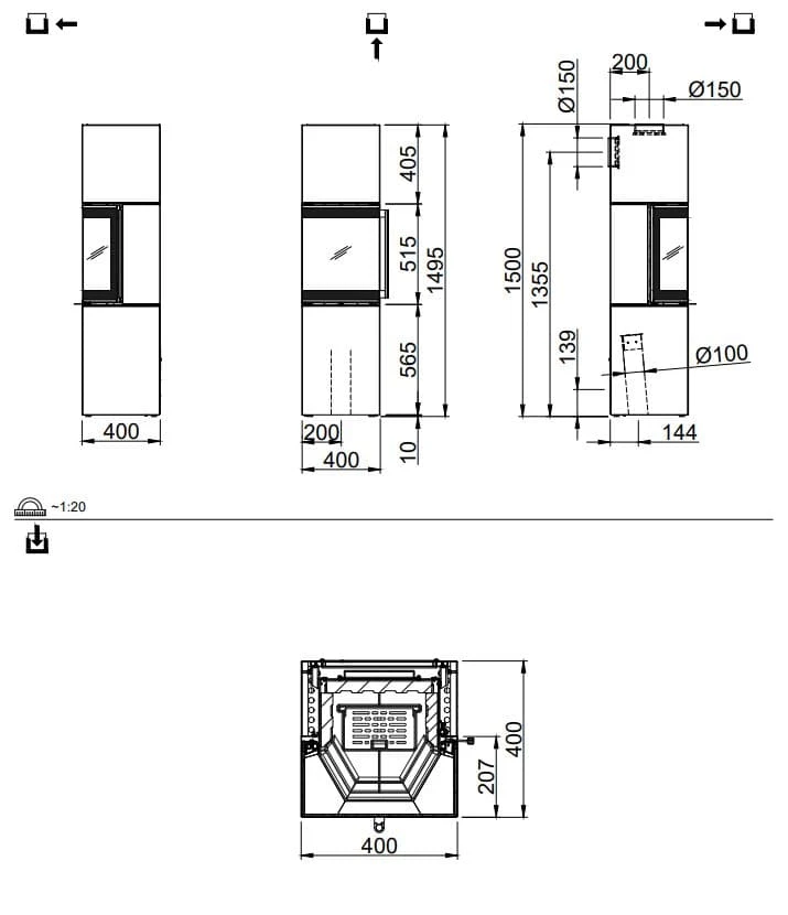 Höhe Feuerraumtür |